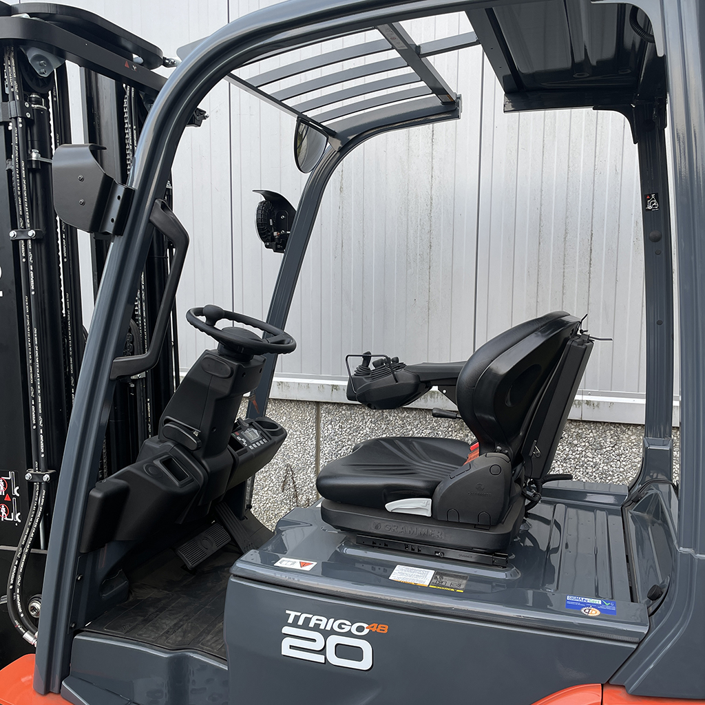 De volledig verstelbare stoel met zij- en lendesteunen, ruime beenruimte en verstelbare stuurkolom bieden elke bestuurder een ergonomische werkplek. Deze comfortvoorzieningen zorgen ervoor dat lange werksessies minder belastend zijn voor de bestuurder, wat bijdraagt aan hogere productiviteit.